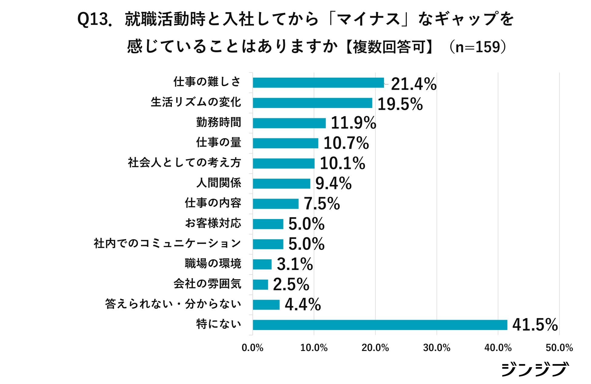 13.就職活動時と入社してから「マイナス」なギャップに感じていることはありますか。※複数選択可(n=159)