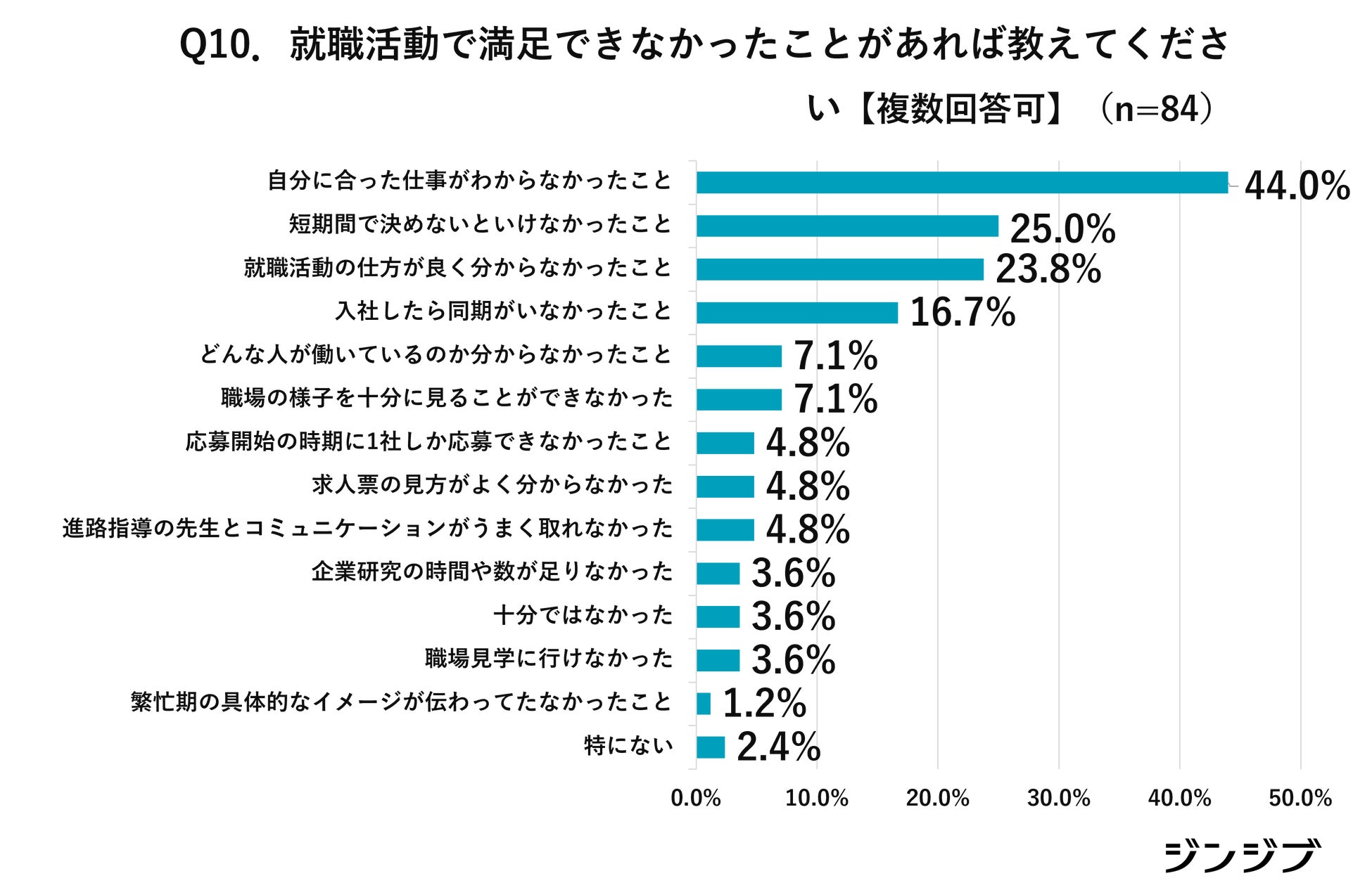 10.就職活動で満足できなかったことがあれば教えてください。※複数回答可(n=84)