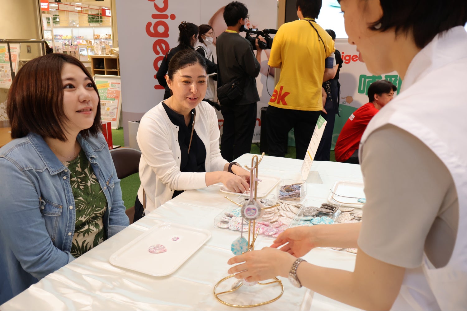本イベント「哺乳びんリサイクルでつなぐ育児のバトン」は、赤ちゃんが使っていた哺乳器がマタニティマークへと形を変え、これから生まれてくる赤ちゃんご家族にバトンとして引き継がれていくことで、育児のつながりとリサイクルへの意識を高める啓発活動として開催しました。哺乳器を使っていた赤ちゃんご家族の想いを受け取り、生まれてくる赤ちゃんの健やかな成長を願い、回収した哺乳器を“妊産婦にやさしい環境づくりを推進する意味も持つマタニティマーク”へと生まれ変わらせました。イベントでは、使用後の哺乳器に関するご家族の悩みとリサイクル課題が説明された他、実際に哺乳器を使用していたご家族へ「卒乳証書」の授与や、プレママへ回収した哺乳器パーツの一部を原料に使ったマタニティマークの贈呈が行われました。その後のワークショップではオリジナルのマタニティマーク作りを、ご来場のプレママ・プレパパに体験していただきました。