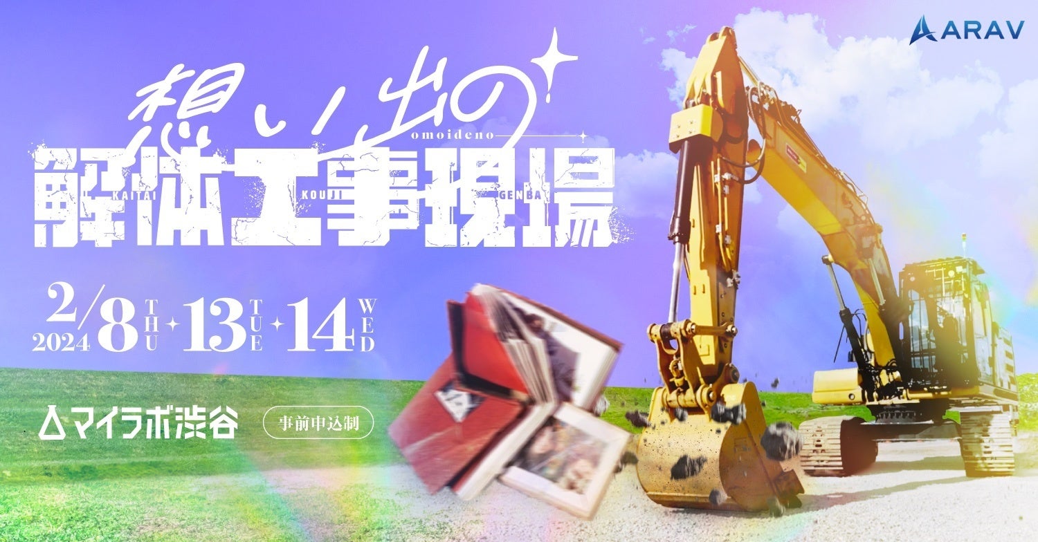 株式会社オプテージ(大阪市中央区)は、携帯電話サービス「mineo(マイネオ)」が運営する実験型未来共創スペース「マイラボ渋谷」において、重機を遠隔操作して「元恋人」や「昔の夢」など、過去への未練を断ち切れない方が新たな一歩を踏み出すために「想い出の品」を自ら解体するイベント「想い出の解体工事現場」を実施します。