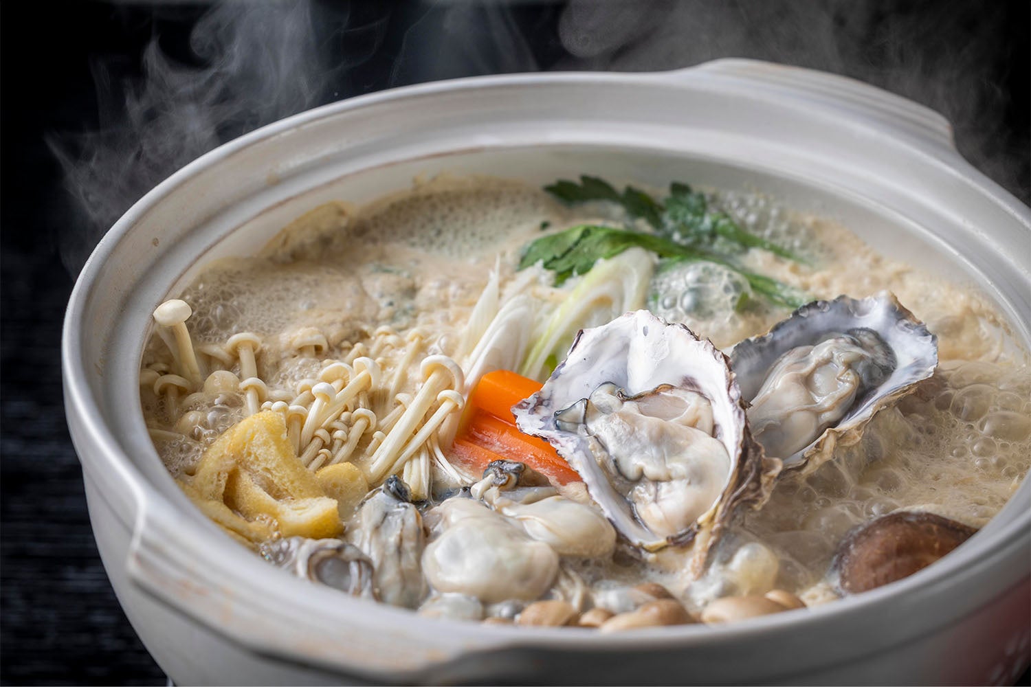 名物のひなせかきを味わう期間限定の牡蠣鍋コース・牡蠣の豆乳鍋