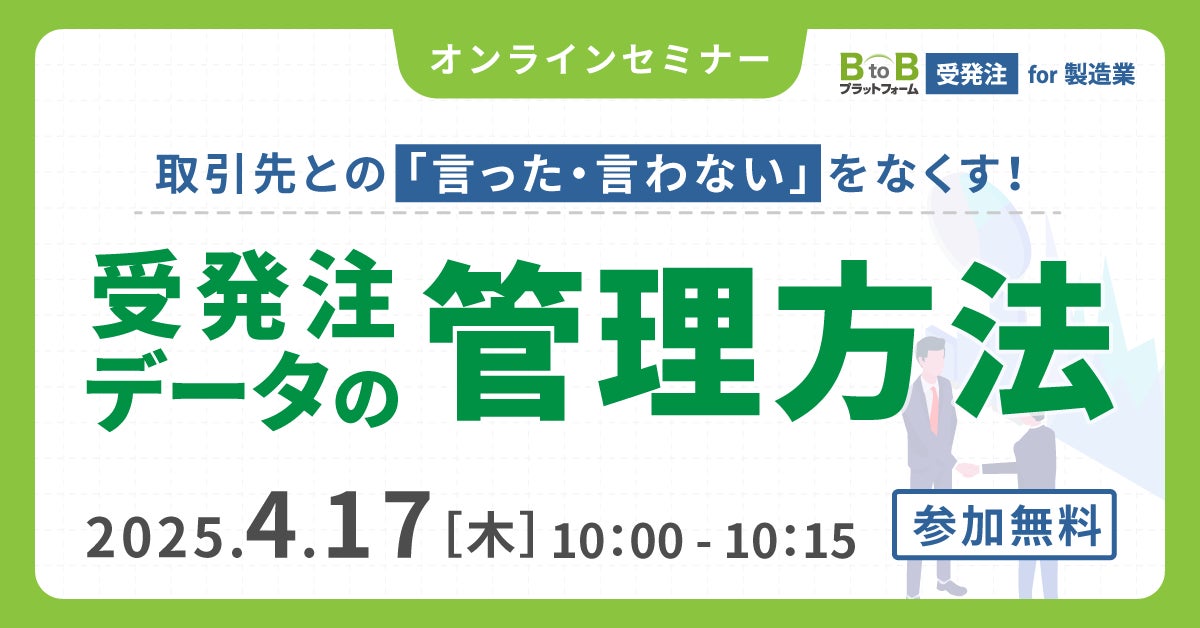 株式会社テクノア(本社:岐阜県岐阜市、代表取締役:山﨑 耕治)は、2025年4月17日(木)にオンラインセミナー【取引先との「言った・言わない」をなくす!受発注データの管理方法】を開催いたします。