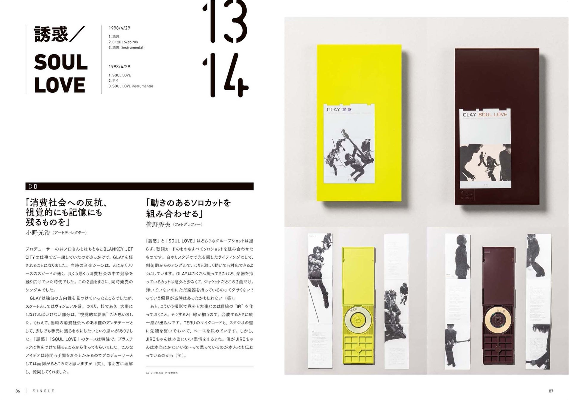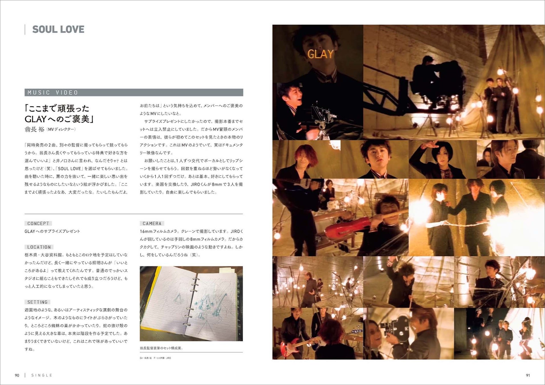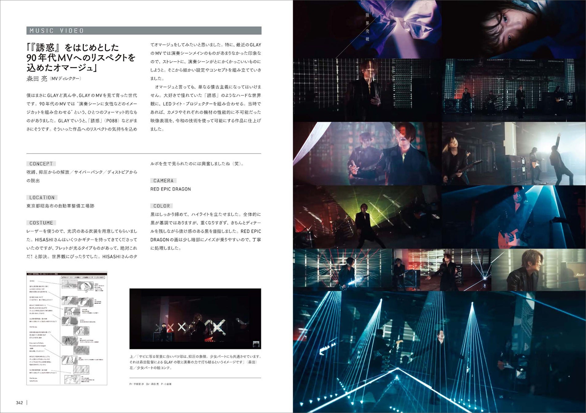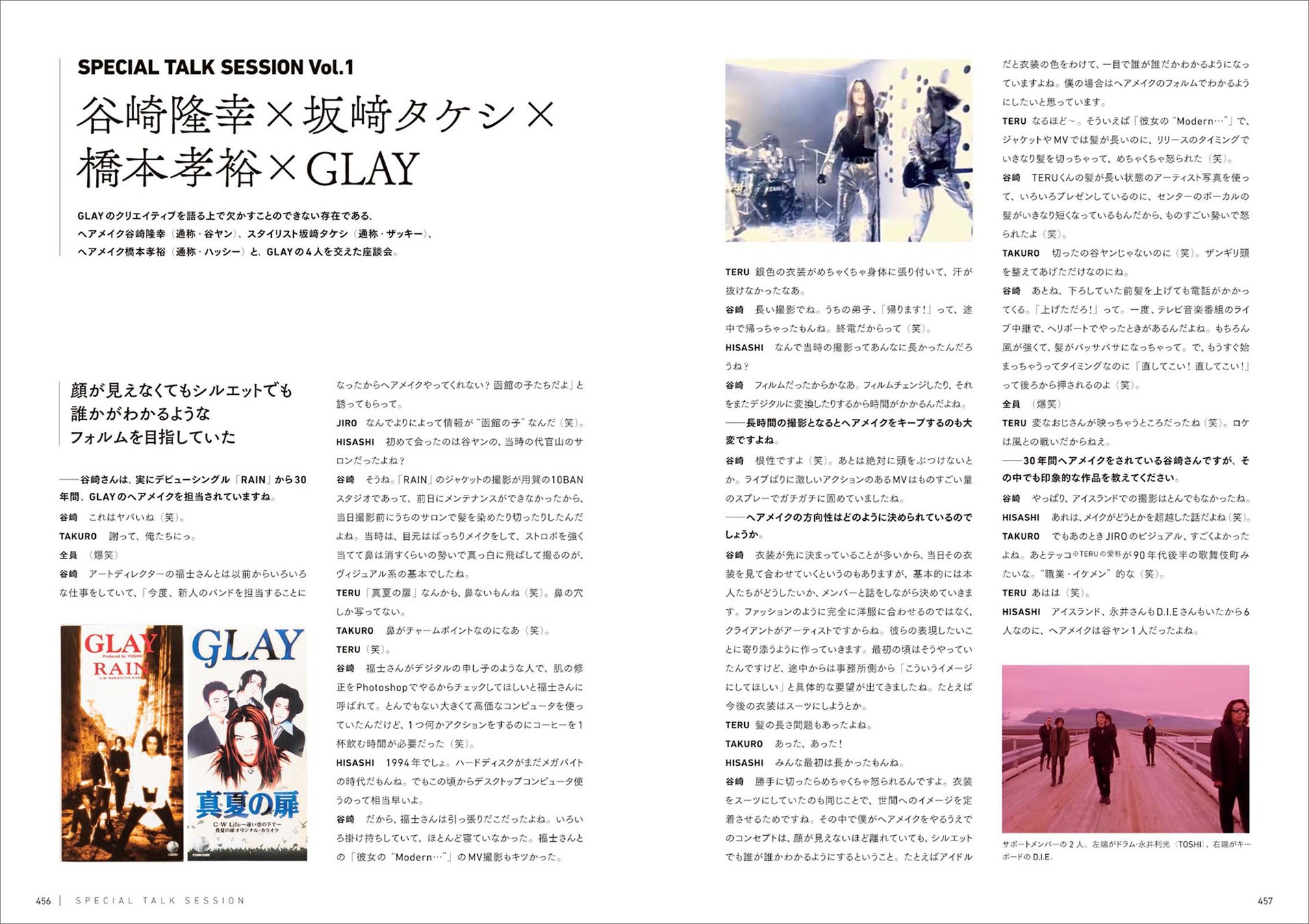 シングル68作品・アルバム32作品、ミュージックビデオ109作品、クリエイター総勢105名のインタビューから30周年を振り返る。また、巻末インタビューは豪華3本。デビューから30年間、GLAYのヘアメイクを担当する谷崎隆幸氏はじめ、スタイリスト坂﨑タケシ氏、ヘアメイク橋本孝裕氏とのメンバーの座談会。カバー・巻頭のディレクション&撮影を担当した清水恵介氏・長山一樹氏の対談。夫婦でGLAYのライブフォトグラファーを担う岡田裕介氏・田辺佳子氏の対談を収録。