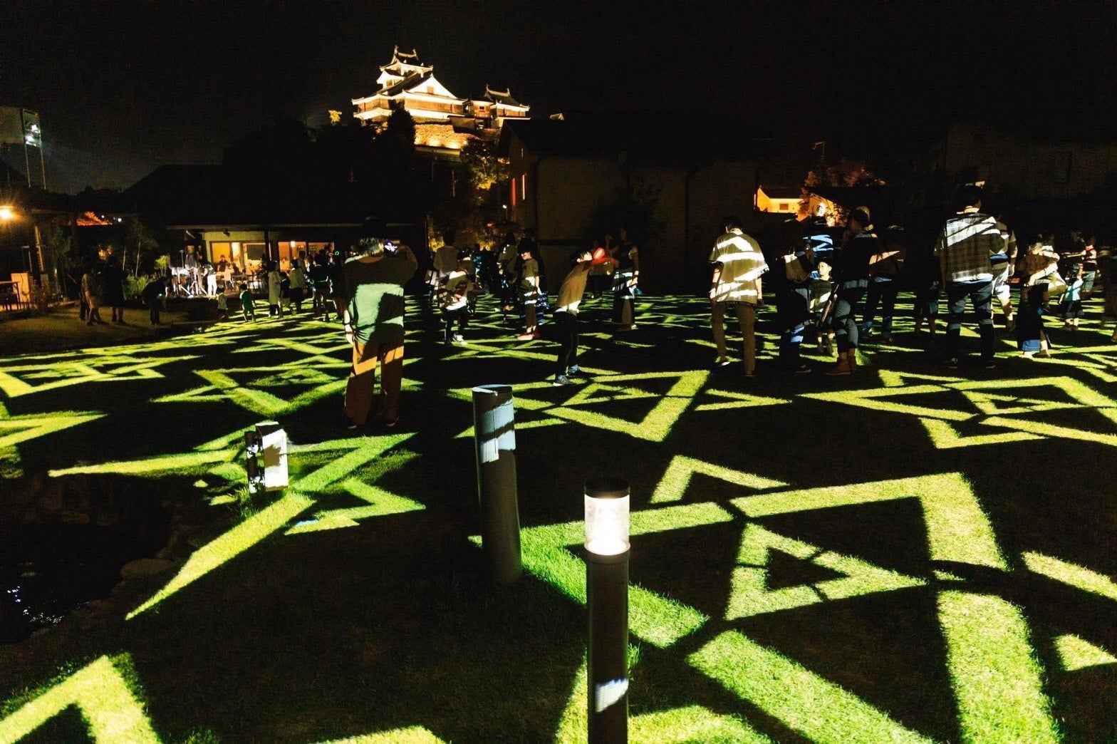 都市圏でのプロジェクションマッピングで活躍されているPixelEngine Ltd.代表・三谷正さんによる、ゆらのガーデンの芝生に映し出される体感型プロジェクションマッピング。芝生の上を動くと光が反応するインタラクティブシステムを採用しています。光の芝の上で自由に遊んでいただけます。