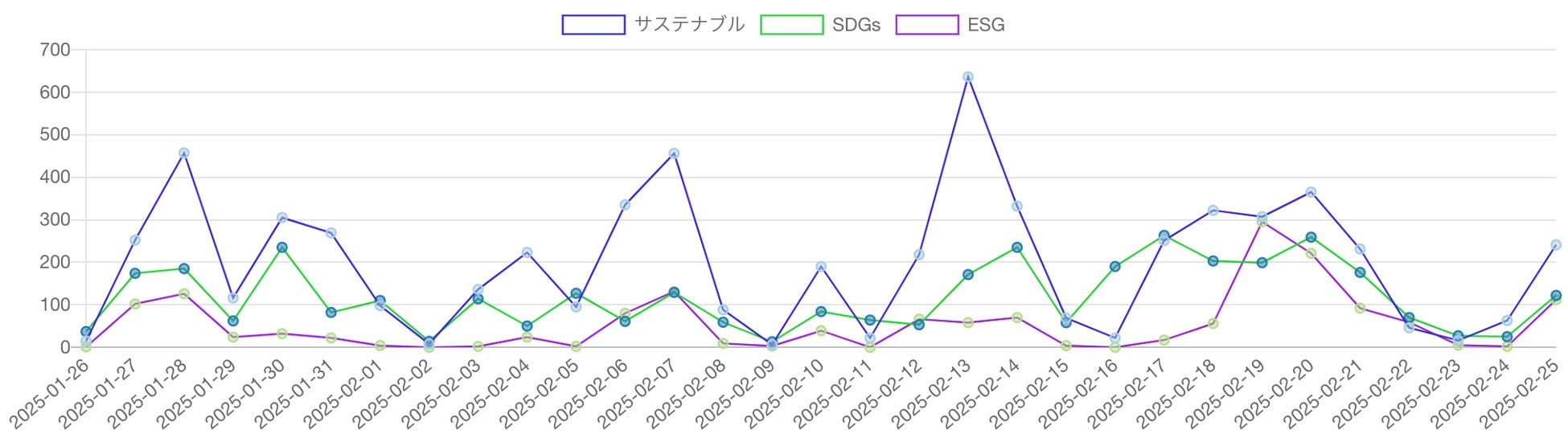 株式会社トドオナダ(代表取締役社長 松本泰行)は、2025年1月26日〜2月25日までのSDGs・ESG・サステナビリティに関するウェブニュースについて調査・分析いたしました。4,000以上のWEBメディアをモニタリングできるPR効果測定サービス「Qlipper」( https://qlipper.jp/ )のデータに基づいた調査結果です。