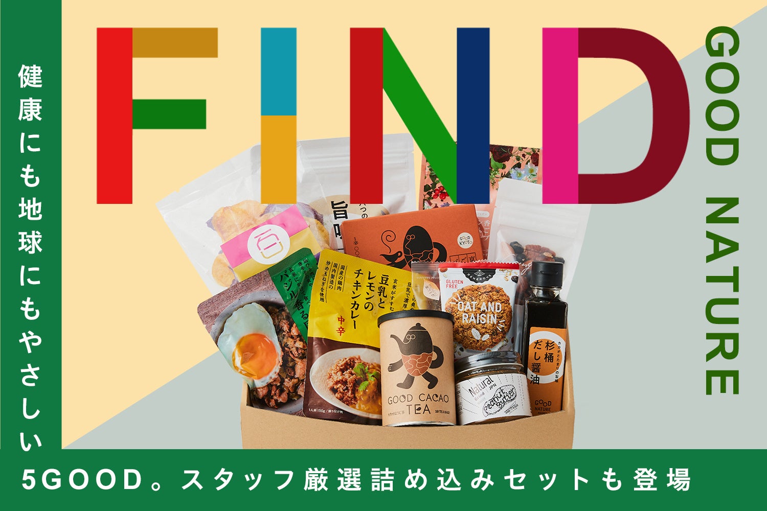 2015年9月25日に国際連合で「持続可能な開発目標(SDGs)」が採択されたことから、9月25日を含む約1週間は、これからの未来を考えるSDGs週間とされています。「GOOD NATURE STATION ONLINE」ではSDGs週間にかけて、健康にも地球にもやさしい商品が詰まったセット「FIND BAG」の数量限定販売や、送料無料のキャンペーンを実施します。