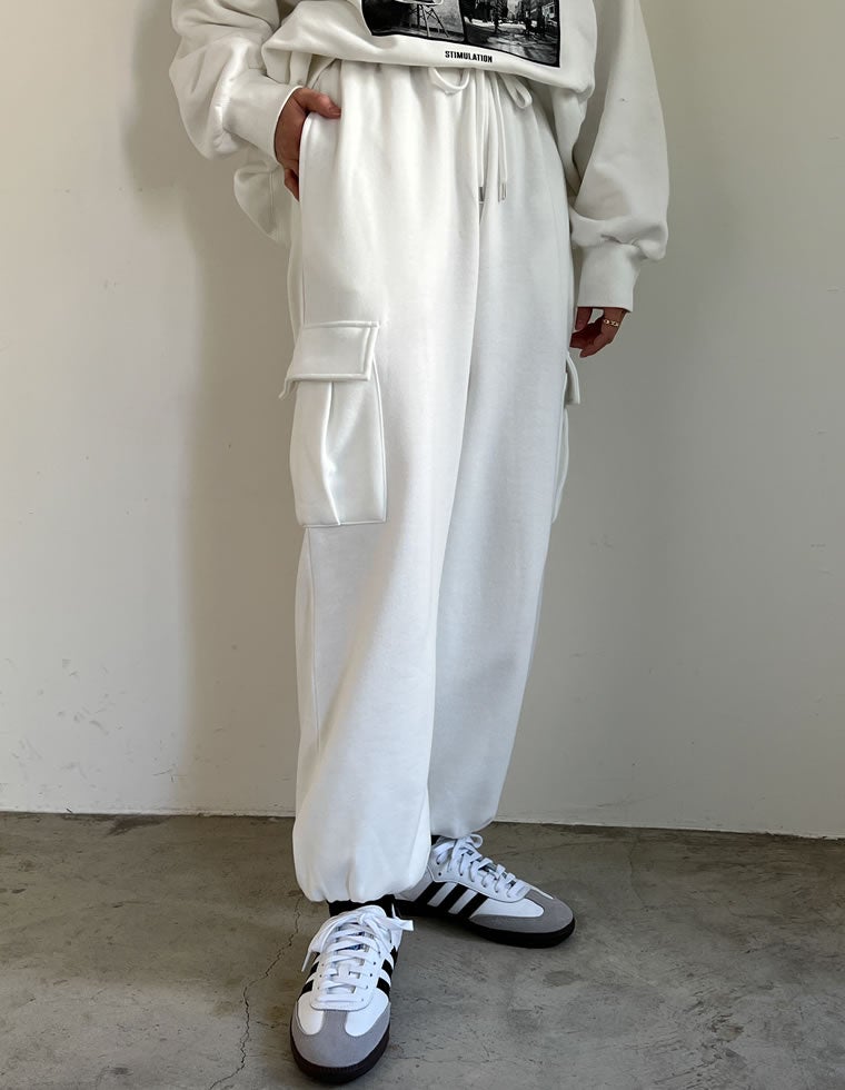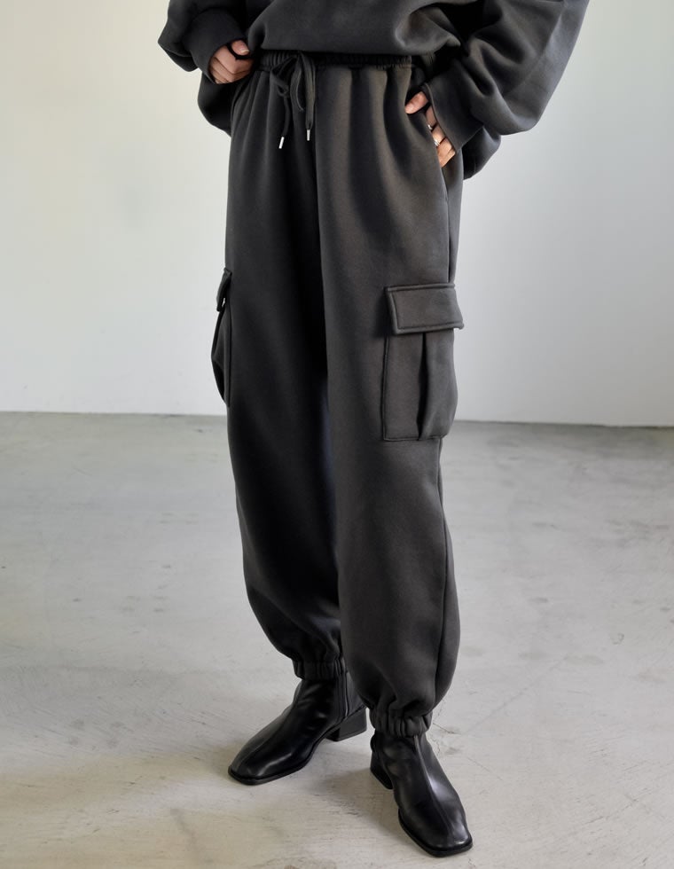 プルオーバーとセットアップで着られる裏起毛カーゴパンツも同時発売