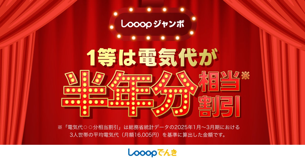 「エネルギーフリー社会の実現」をビジョンに掲げ、エネルギーと暮らしの新しいあり方を追求する株式会社Looop(本社:東京都台東区、代表取締役社長 CEO:中村創一郎、以下「Looop」)は、1月29日(木)より、Looopでんきによる「お財布にやさしい」新たな取り組みとして、くじ型キャンペーン「Looopジャンボ」を開催します。