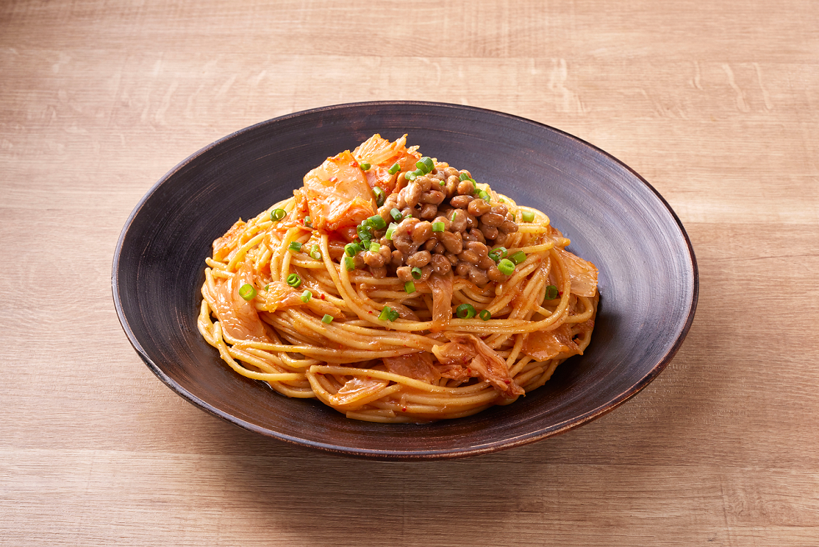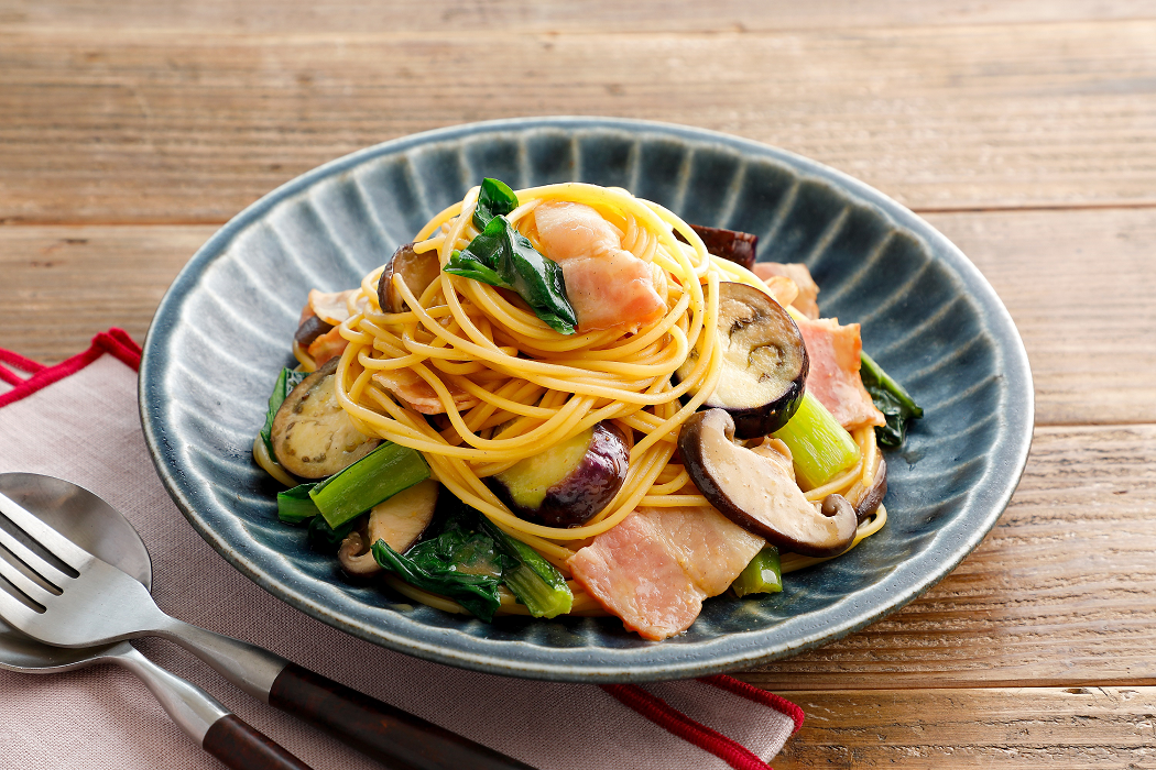 <うま辛ペペロンチーノ>はニンニクの豊かな香り・コクとピリッとした辛さが特長で、外食店で食べるパスタのように本格的でパンチのきいた、やみつきになる味わいです。<香ばし和風醤油>は醤油味をベースに生姜をきかせ、隠し味として牛肉や玉ねぎのコクを加え、黒胡椒で味を調えました。どんな具材にも合わせやすく、香ばしい醤油の風味豊かな味わいが楽しめます。2品種ともに、用意する具材をお好みのものに変えることで、自由にアレンジしていただけます。