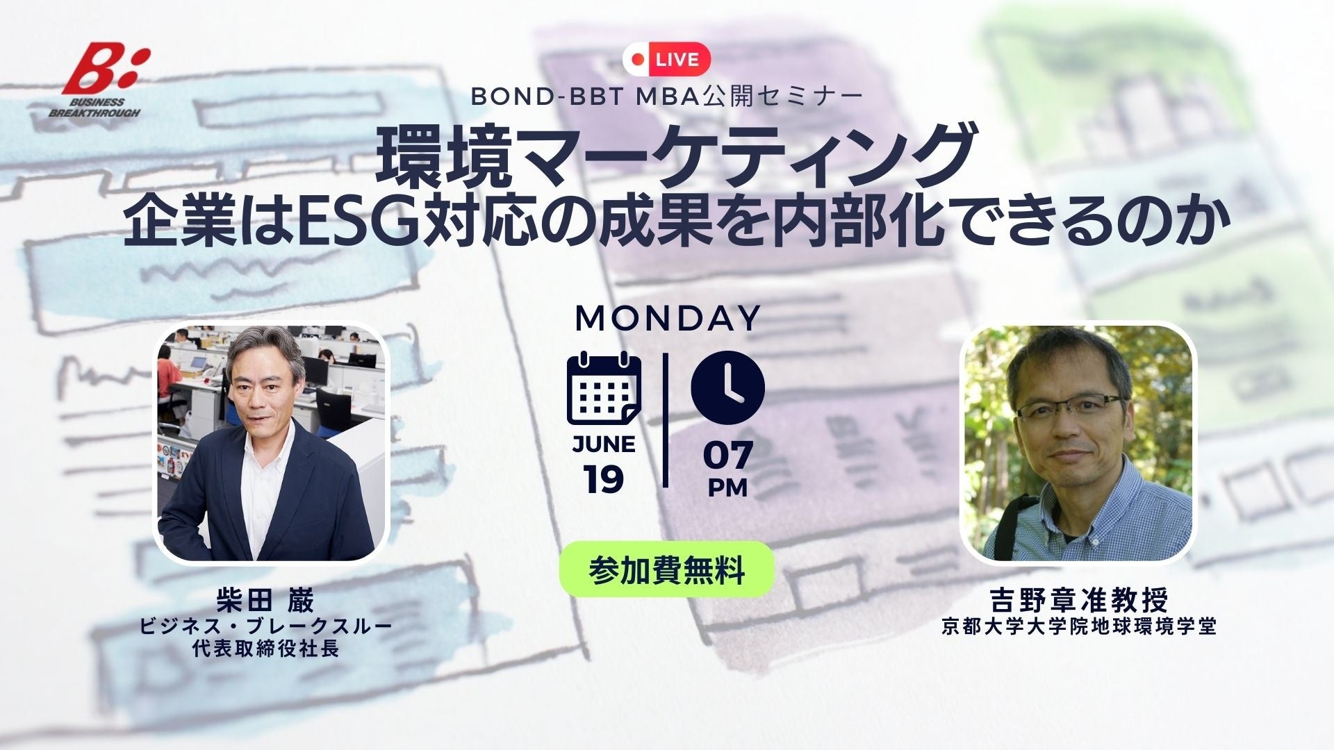 BOND-BBT MBA公開セミナー『環境マーケティング:企業はESG対応の成果を内部化できるのか』