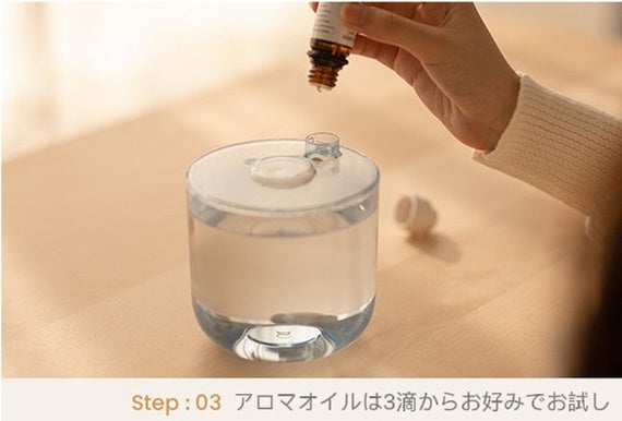 お好みの香りが部屋全体に広がり、潤いと芳香の相乗効果で、“心地のいい空間”を作ります。