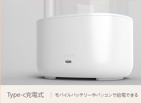 バッテリーを搭載し、コードレスでどこでも使用可能です。寝室、子供部屋などスペースが限られた場所や、オフィスなど自分で湿度を調節しにくい場所での乾燥対策としておすすめです。充電しながらの使用も可能です。
