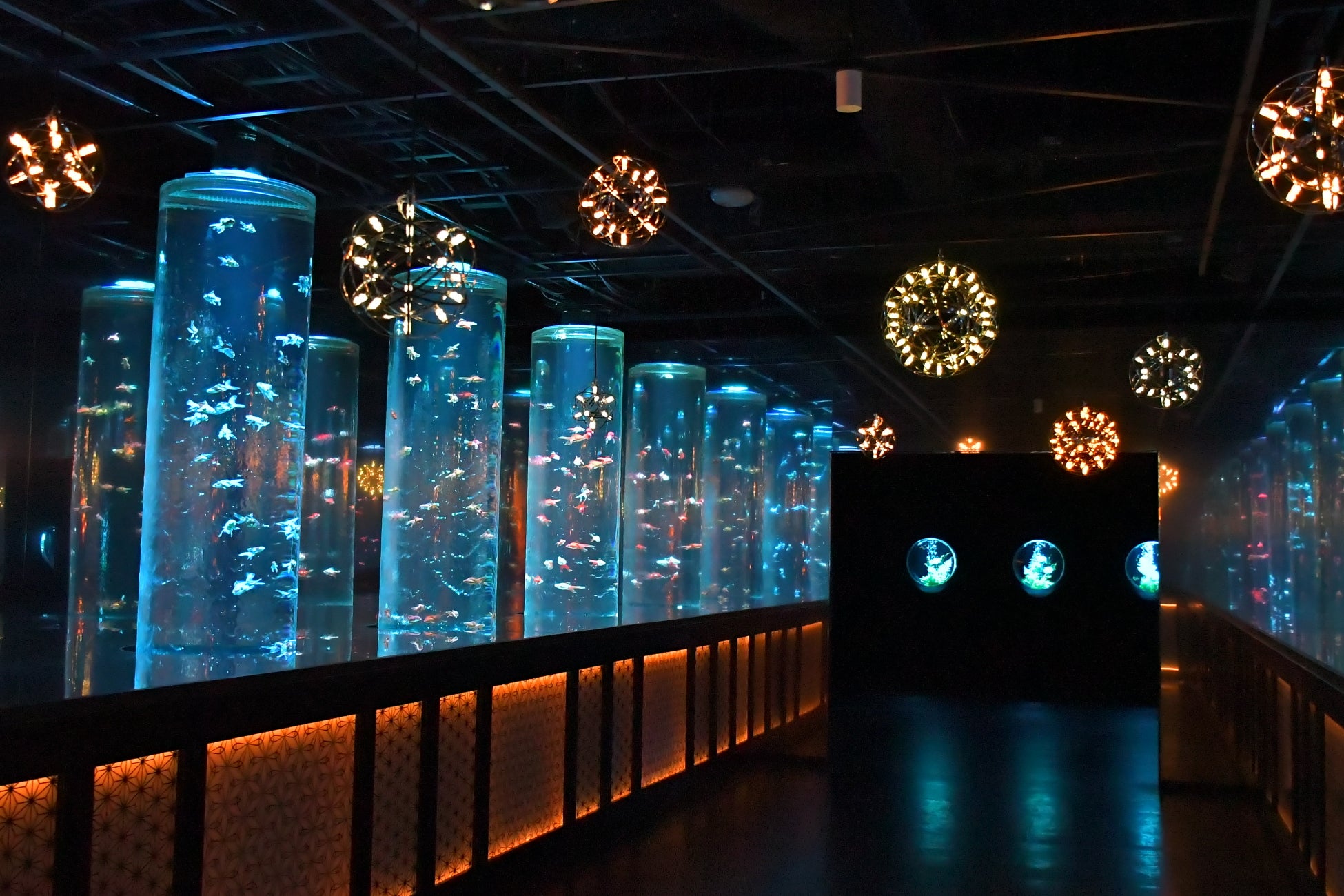 様々な種類の金魚が優美に舞い泳ぐ水槽作品を、光彩と音楽、そして香りで演出したアート、“アートアクアリウム”。江戸時代から続く金魚鑑賞という文化を、芸術作品として現代に表現します。水槽作品の造形美、空間演出、そしてさまざまな美しさをもつ金魚たちがつくりだす唯一無二の幻想世界が広がります。2022年5月に銀座三越に誕生した「アートアクアリウム美術館 GINZA」は、年間を通して四季の移ろいをお楽しみいただける常設施設です。