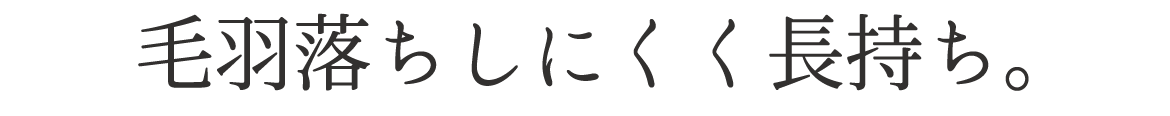 一般の無撚糸と比べ、撚り方にも工し、毛羽が出にくい糸にグレードを高め、風合いにもこだわりました。