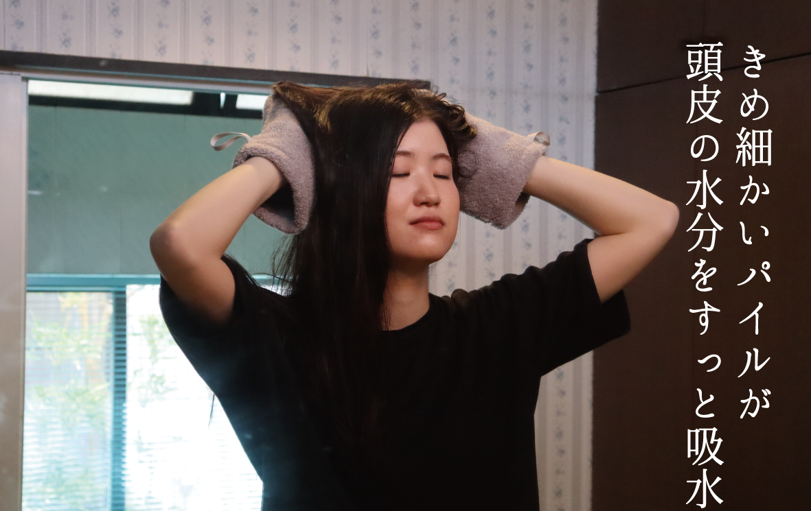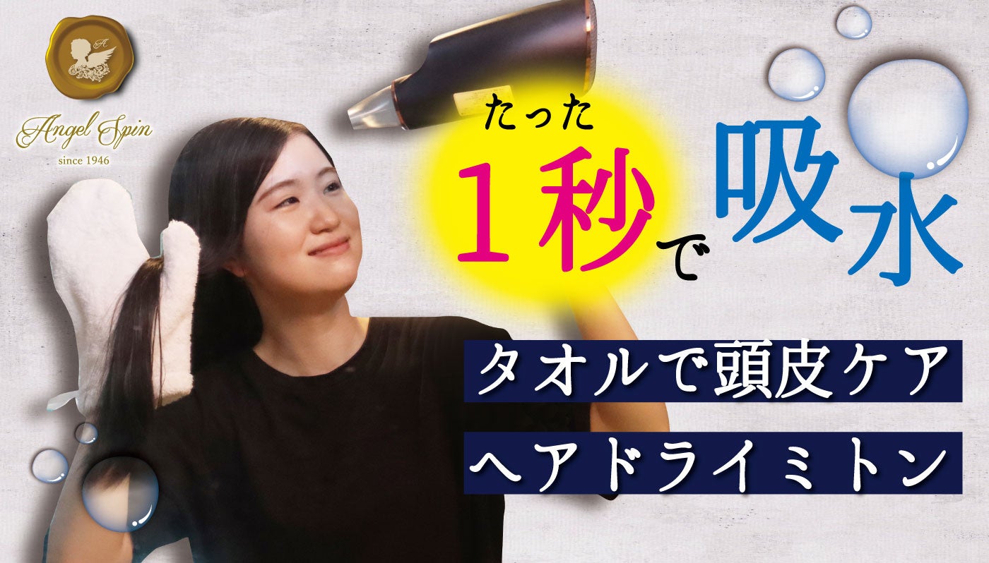 ・タイトル:ヘアドライ時間短縮!特殊な糸を使用、吸水性抜群で頭皮ケアに。ヘアドライミトン