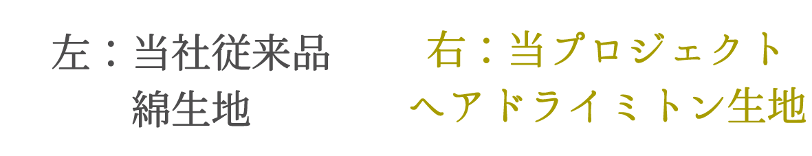 特殊な撚糸加工新無撚糸は、糸にたくさんの隙間があるので、その中に空気や水をすぅ~と吸収しやすい構造になっています。