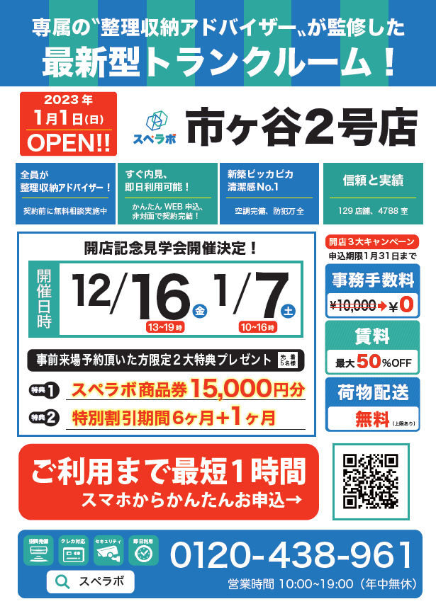 オープンに合わせ12月16日(金)1月7日(土)に見学会を実施しますので、ぜひ【スペラボ・市ヶ谷2号店】にお越しくださいませ。