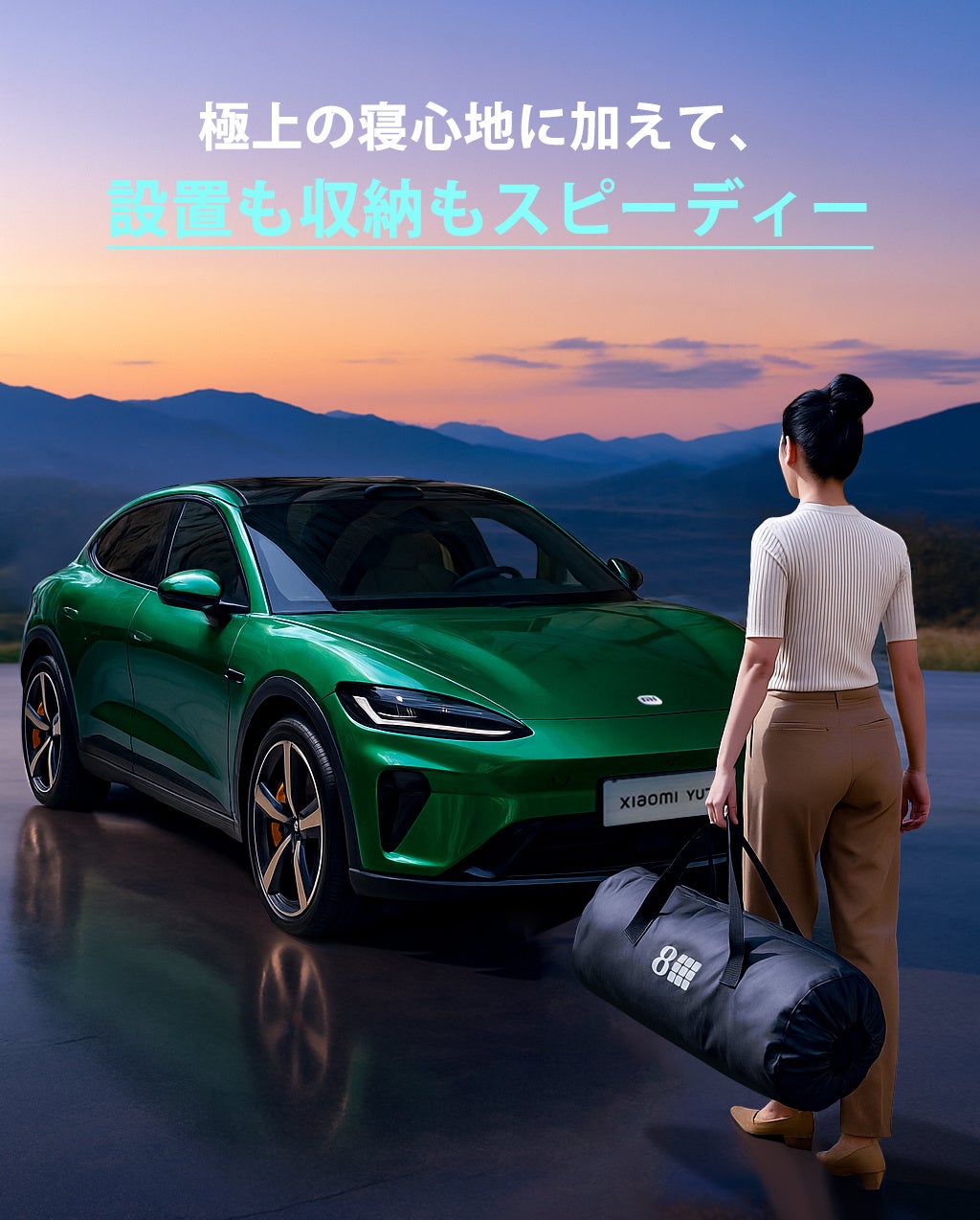 ホテルベッドのような寝心地と、エアーマットならではの手軽さを兼ね備え、これまでの車中泊の常識を覆すアイテムです。