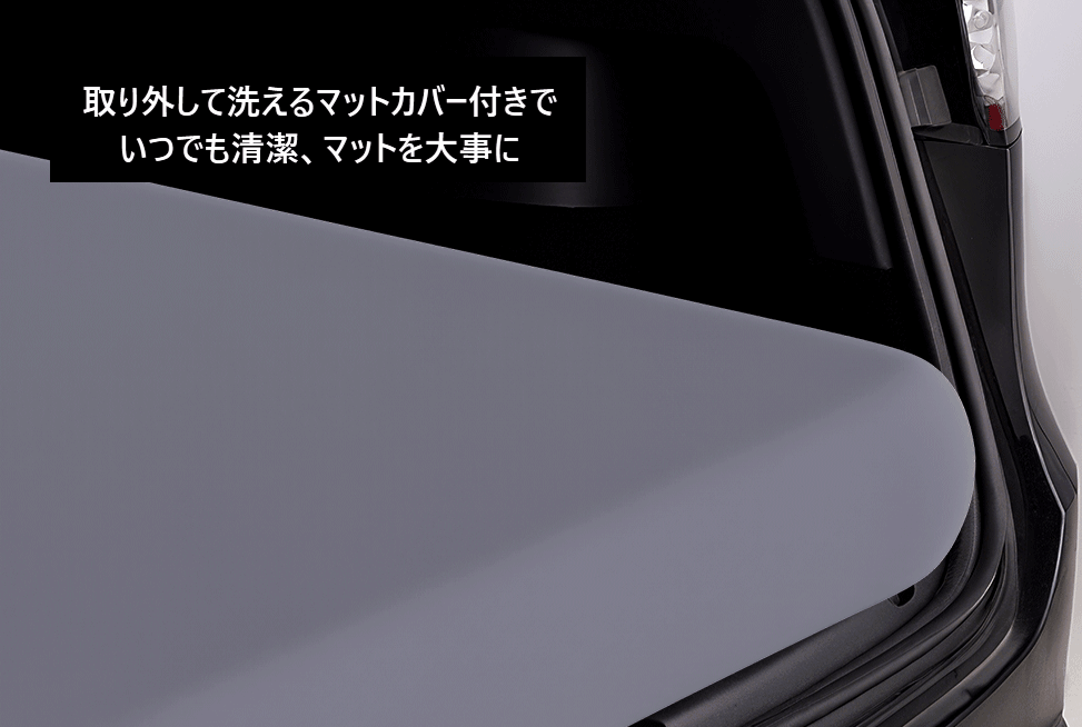 ③幅広い車種に対応!洗える着脱式カバーで常に清潔、マットを大事に長持ち使用。