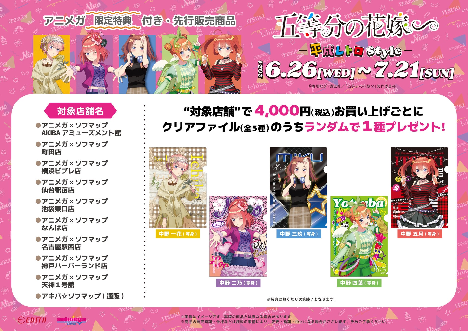 TVスペシャルアニメ「五等分の花嫁∽」-平成レトロStyle-のオリジナルイラストを使用したグッズがアニメガ×ソフマップで先行販売決定!