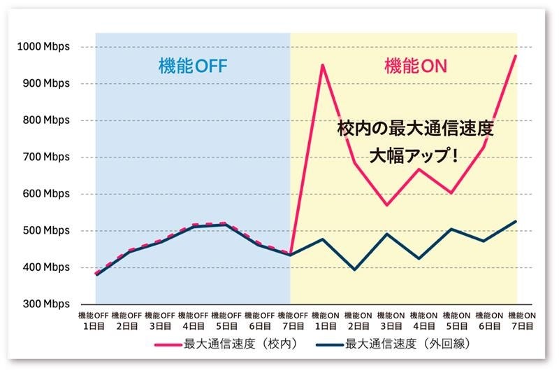 エッジキャッシュ機能の効果(A小学校における授業日の通信速度データ)