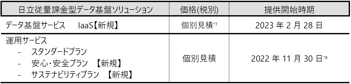 また、本サービスに先がけ運用サービスを強化し、業務の継続性を高める故障予兆通知や、カーボンニュートラル達成に向けたCO2排出量の見える化など、経営課題解決に貢献するサービスを、2022年10月31日より販売開始するとともに、日立のクラウドストレージ*2の先行体験が可能なEarly Adopter Programを本日より開始します。本プログラムの利用により、お客さまは業務システムにクラウドストレージを組み合わせた価値を創出するプロセスをいち早く実施することができ、ハイブリッドクラウドの本格導入に向けた検討期間を短縮することが可能になります。