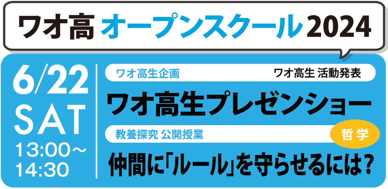ワオ高オープンスクール2024 第二回 6月22日(土) 13:00-14:30 (申込期限 6/21(金)15:00)