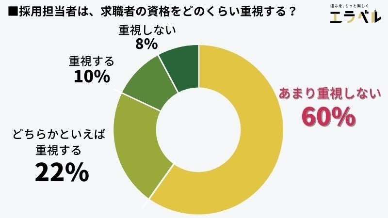 「資格はあまり重視しない」が最多の60%、「重視する」と回答した採用担当はわずか10%という結果に
