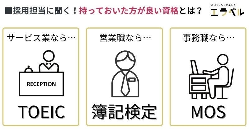 資格を「重視する」「どちらかというと重視する」と回答した採用担当の中でも「この資格があれば目にとまる」と名前が多くあがった資格を職種別に紹介します。
