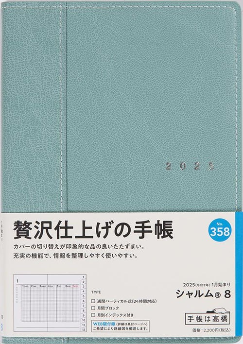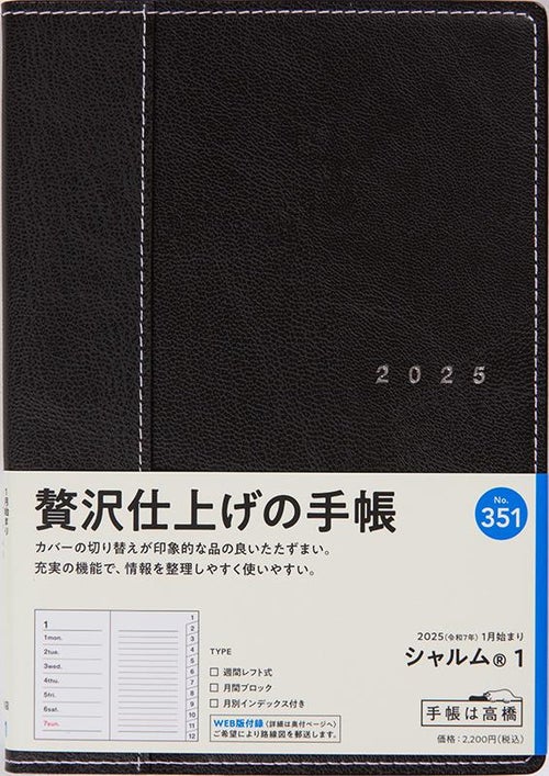 皮革調の生地を2種類切り返しで用いた高級感あるカバー、使いやすさにこだわり機能性の高い本文、豊富な記入形式(レイアウト)でファンの多いシリーズです。現在発売中の2025年版では帯のデザインを一新し、「贅沢仕上げの手帳」として店頭に存在感を放っています。
