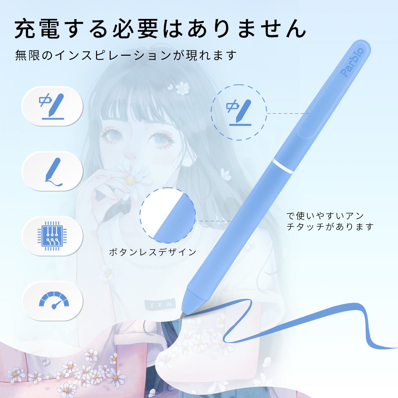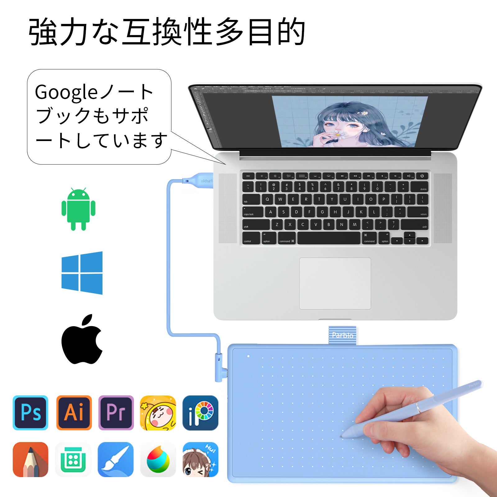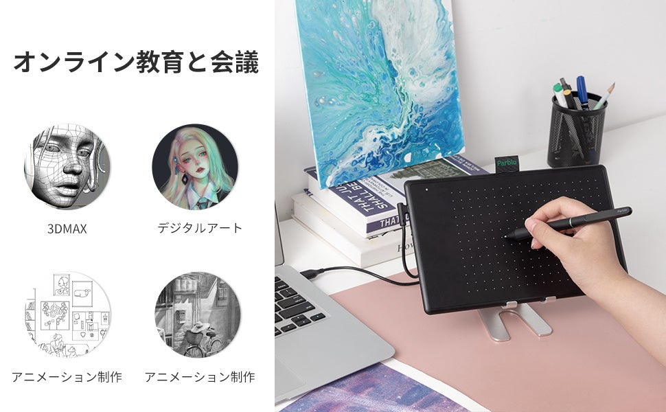 " Parblo "はイラストレーターであるあなたの芸術創造旅に同行するお絵かきに最適なパートナーである。お手頃な価格の高コスパペンタブ及びすばらしい絵画体験を提供するのはこちらの使命です。デジタルアートの向上には、上質なペンタブが欠かせないです。