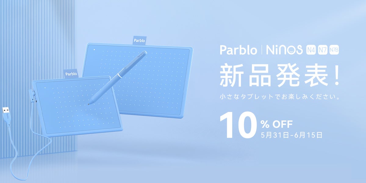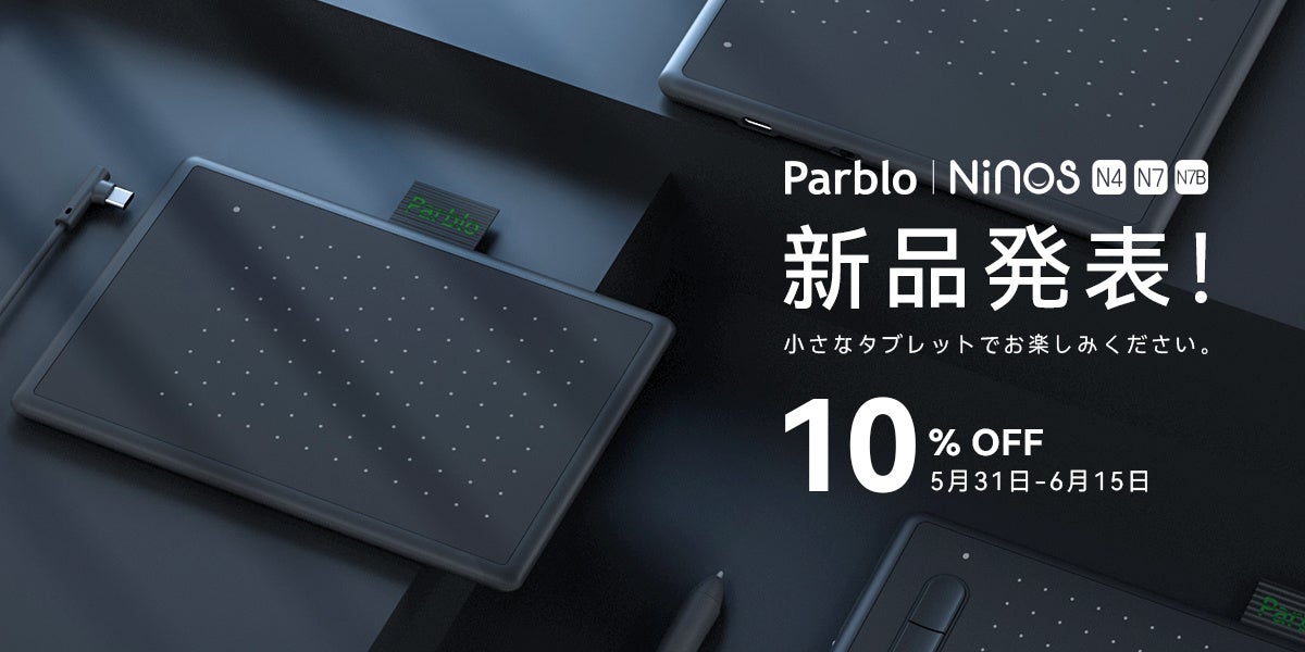 Parblo Ninosシリーズ新発売、N4/N7/N7Bペンタブはお絵描きの初心者に向け、超薄型描画タブレットが5月31日-6月15日期間限定で10%OFF!