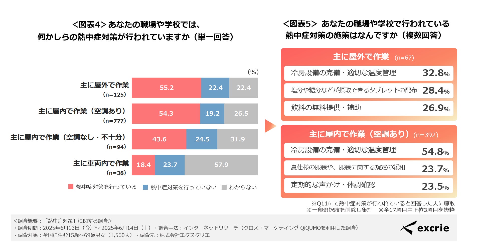 屋外作業の職場では約5割が熱中症対策を実施、現場特性に応じた取り組みを展開