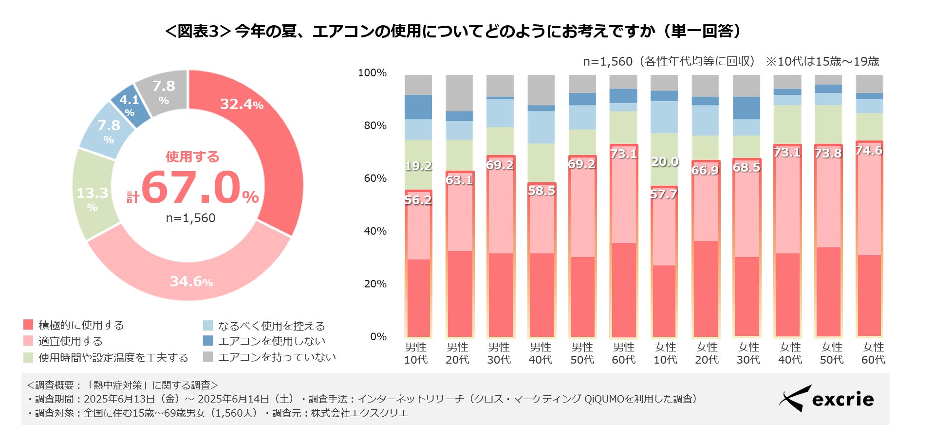 67.0%の人が「今年の夏はエアコンを使用する」、女性ほど使用意向度が高い