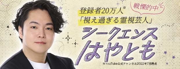 【YouTube登録者20万人超】(公式チャンネル2022年7月時点)人気俳優も芸人仲間も絶句→驚嘆。背筋ゾクッとする程「現実」当て尽くす……視え過ぎる霊視芸人・シークエンスはやともの生き霊鑑定。あなたの現実、起こる未来「視えたまま」にお伝えし、幸せへと導きます!