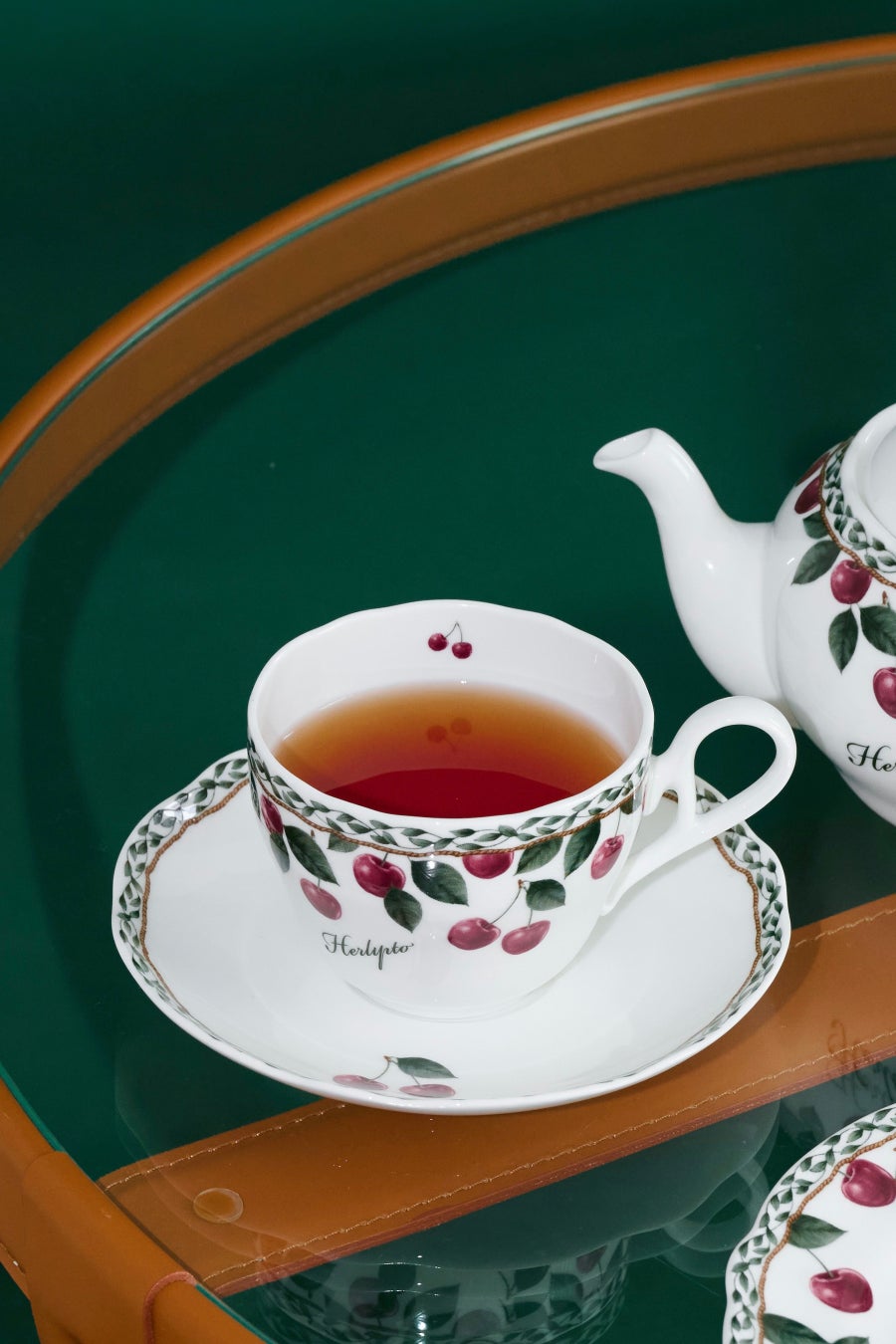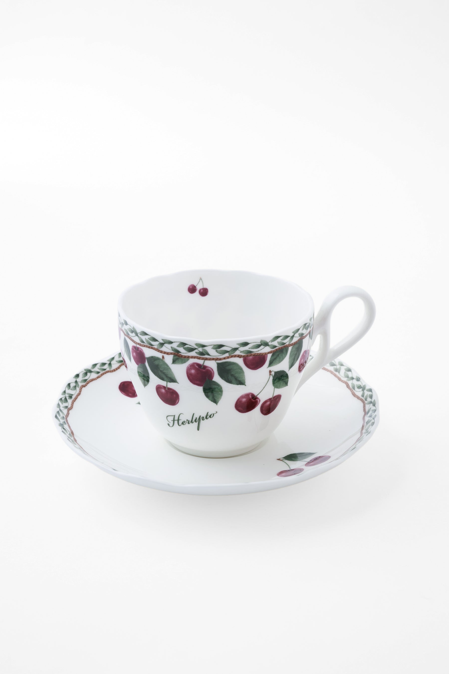 使用しているのは、艶やかで透光性に優れたボーンチャイナ。乳白色のやわらかな色合いに、印象的なチェリーと繊細なリーフ模様をあしらい、ティータイムをクラシカルで華やかなひとときへと演出します。単品使いはもちろん、シリーズで揃えることで統一感のある美しいテーブルコーディネートが完成します。