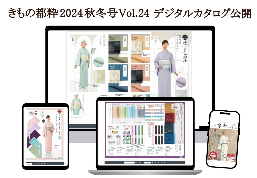 カジュアル着物のカタログ通販サイト「きもの都粋」では、2024年9月1日から紙媒体の最新カタログ「きもの都粋2024秋冬号Vol.24」を頒布しておりますが、新たにWeb版の電子カタログをリリースいたしました。