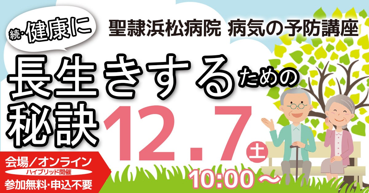 聖隷浜松病院 生活習慣に関する病気の予防講座「続・健康に長生きするための秘訣」会場・ オンライン同時開催!