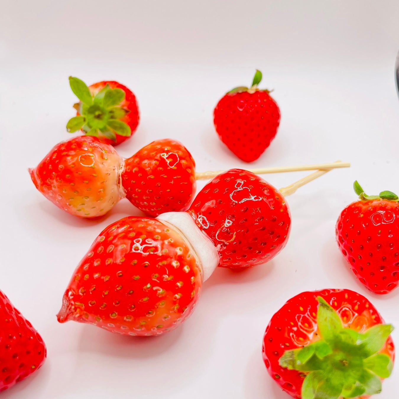これからの時期に向けCqreeでは新商品としてマシュマロ付きいちご飴の取り扱いを開始いたしました。