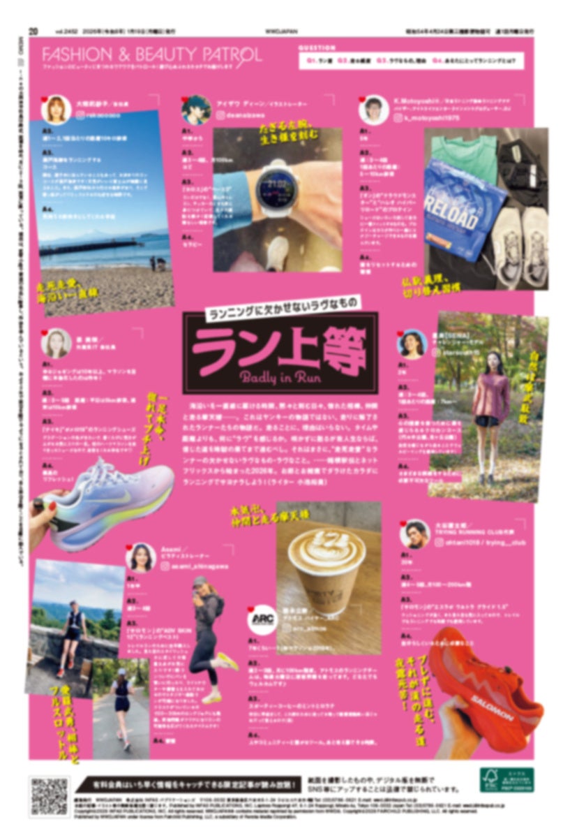 恒例企画「ファッション&ビューティパトロール」では、業界ランナーたちの、ランニングに欠かせない“ラブなアイテム“を紹介。その名も「ラン上等」です。