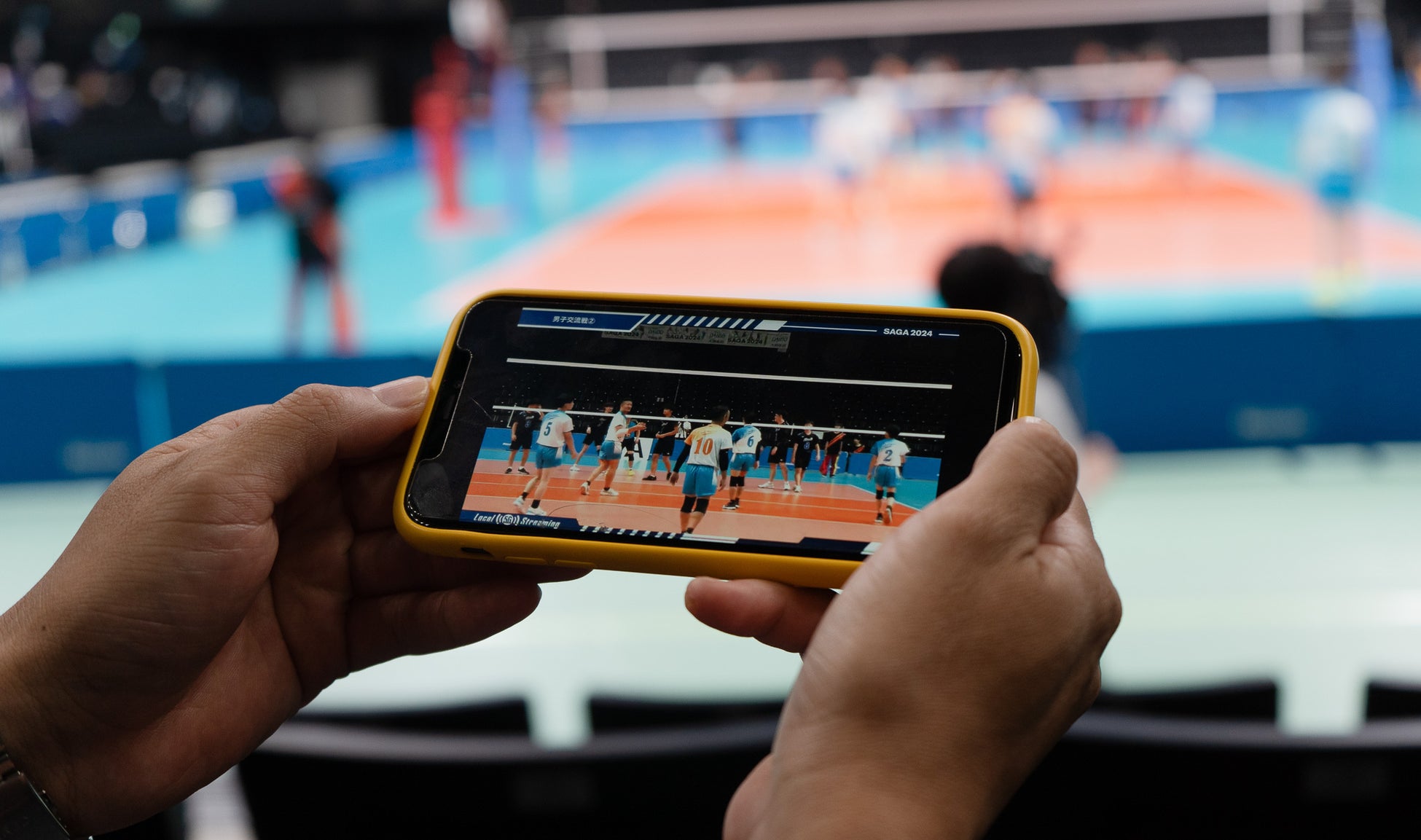 今回の取組みは、佐賀県が昨年度実施した実証事業(「ローカル5Gソリューション実証事業業務委託」)の成果(*2)を踏まえ行ったものです。SAGAアリーナに構築したローカル5Gネットワークとローカル5G対応可能なカメラを用いることで、ケーブルレスというローカル5Gのメリットを活用し、カメラマンが機動的に選手の間近で撮影することで、競技中の選手の息遣いや表情、微細な動きをリアルタイムで配信しました。配信された映像は、SAGAアリーナにお越しいただいた方のスマートフォン・タブレット端末等から無料視聴が可能で、会場内の比較的選手から遠い席でも、実況・解説付きの近接映像を試聴でき、競技フロアの選手に近い目線での高精細・低遅延で臨場感のある映像と、スタンドからの競技観戦を同時に楽しめる新しい応援スタイルを提供しました。(配信を行った競技:体操・新体操・トランポリン・柔道・バレーボール(全障スポ含む))。