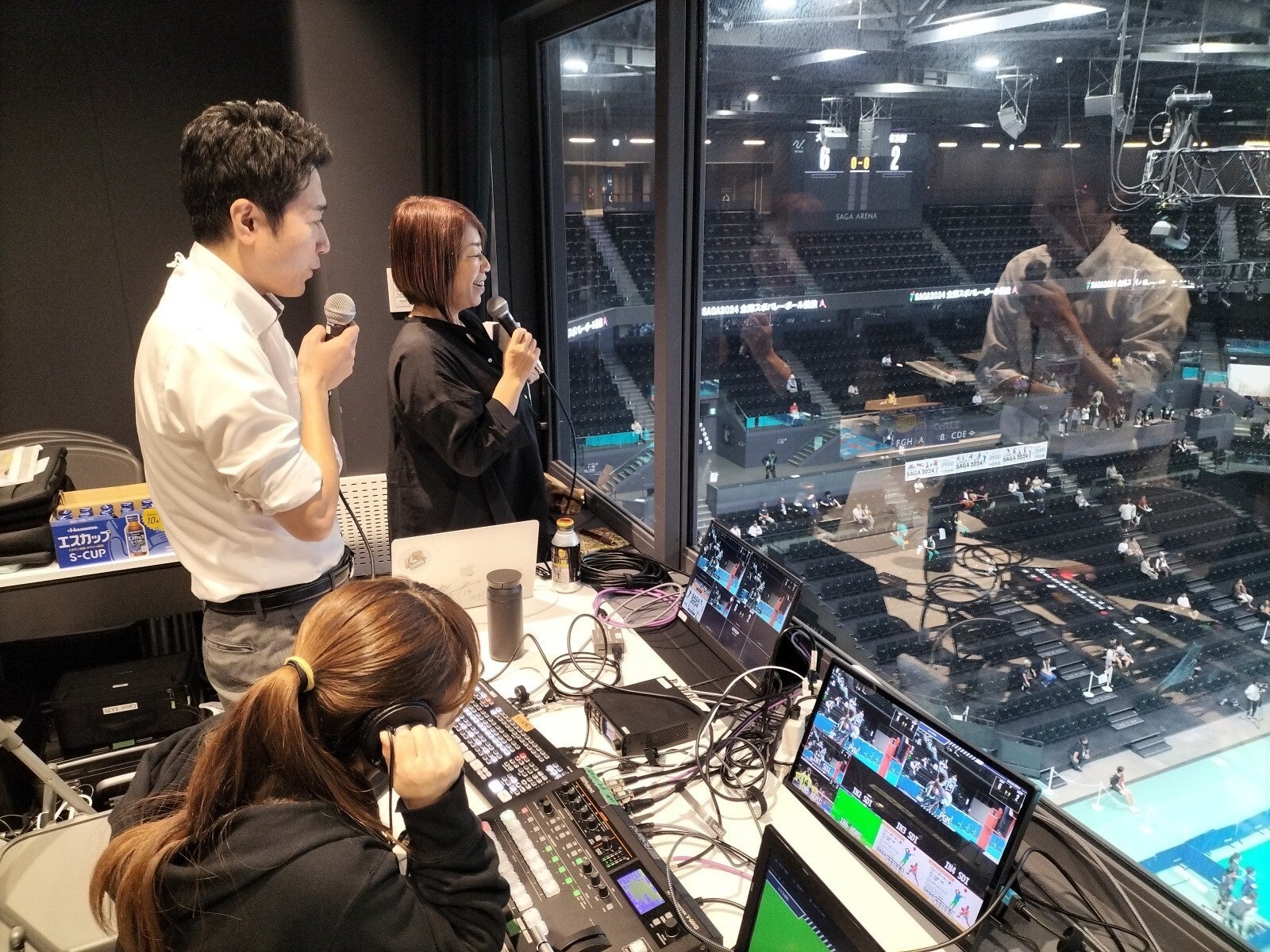 ローカル5Gで配信した映像・音声を実況とテロップを加えて、付加価値の高い映像を配信しました。また、SAGAアリーナにお越しいただいた方のスマートフォン・タブレット端末等から無料視聴ができ、競技フロアの選手に近い目線での高精細・低遅延で臨場感のある映像と、スタンドからの競技観戦を同時に楽しめる新しい応援スタイルを提供しました。また、来場者の方にローカル5Gの技術紹介も行い、体感いただくことで、ローカル5Gへの理解も深めていただきました。