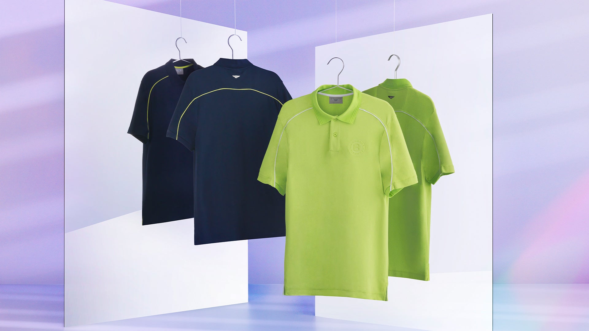 美しいソフトタッチのコットンを使用したポロシャツは、旅行中やゴルフ、あるいは夜のワークアウトにも着用できる一着です。襟はニットリブ、プラケット(前立て)は短めの2つボタンで、袖のリブ編みはベントレーの内装のパイピングをイメージしています。胸には同系色のベントレー「B」エンブレムが刺繍され、ベントレーブランドのボタンが控えめな魅力をさらに引き立てます。