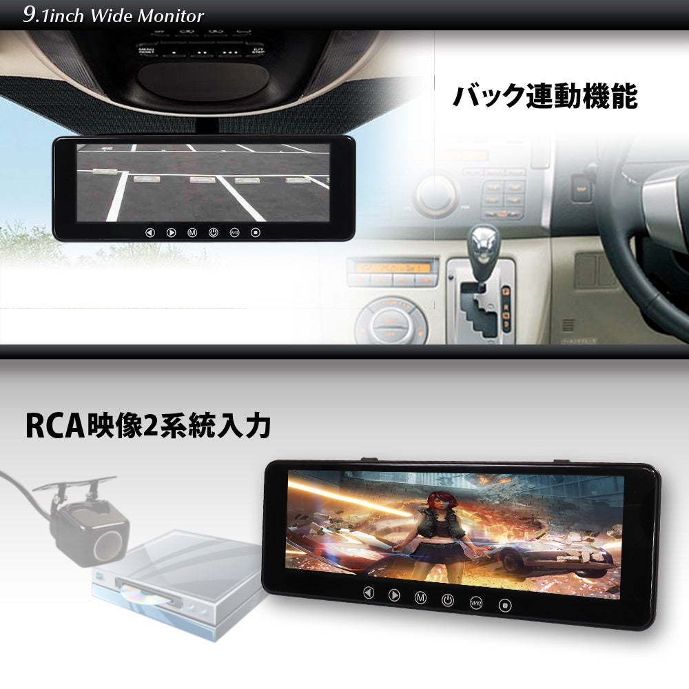 RCA入力でバックミラーや映像モニターとして使えるルームミラーモニター『MR911』がMAXWINから新登場!