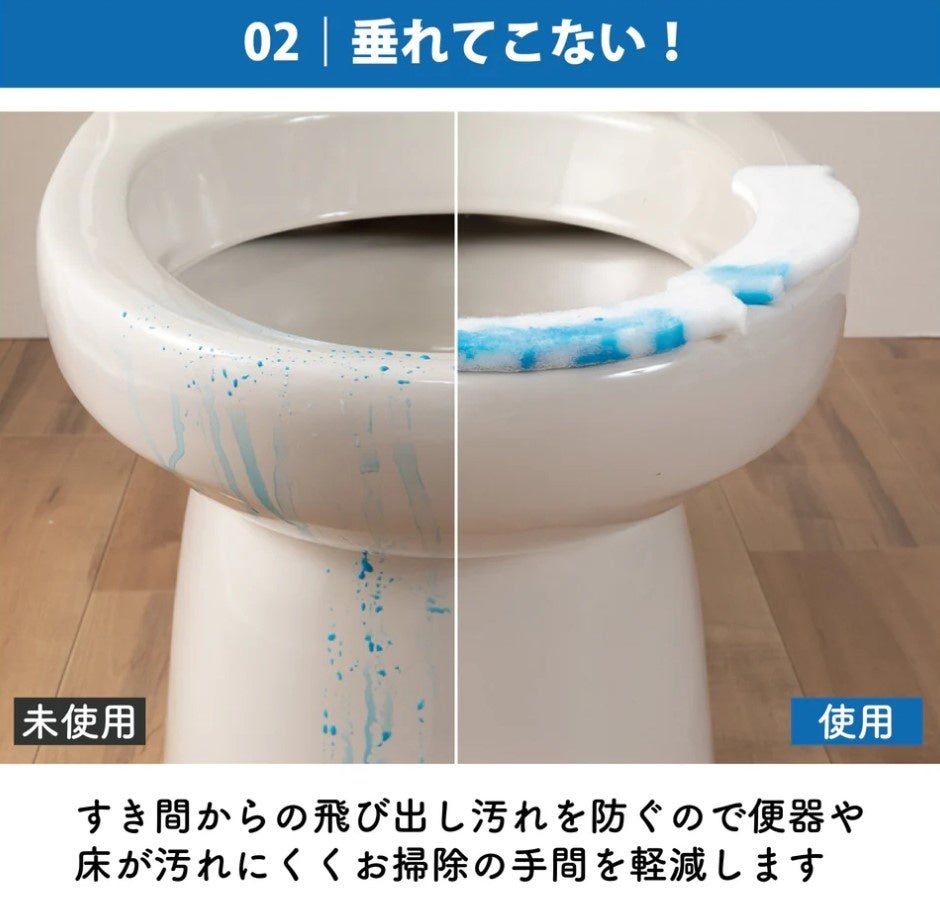 夫が座ってしていますが便座と便器の間からはみ出てトイレマットや便器を汚すので何度も注意していました。これで今までのイライラがなくなったのでストレスから解放されました。 |