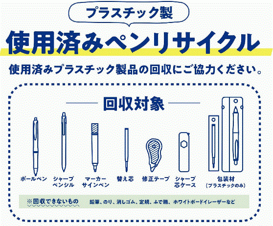 ■回収対象:・使用済みのプラスチック製筆記具類