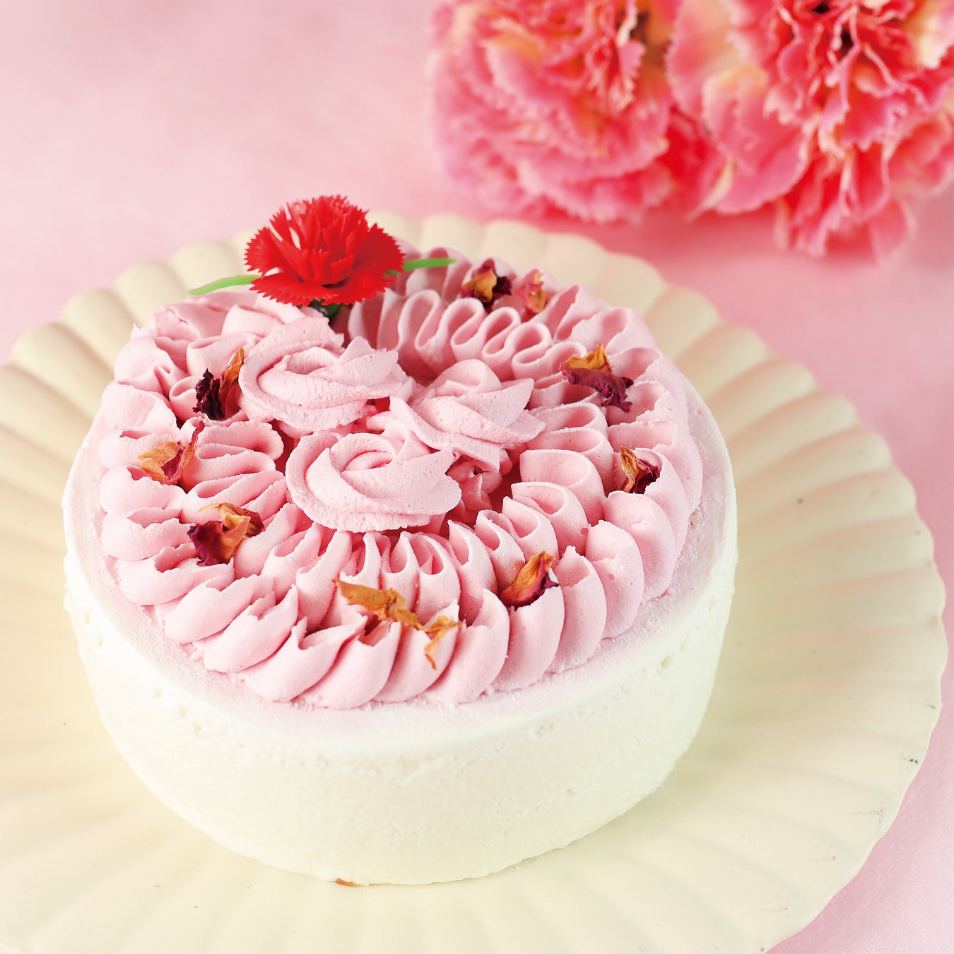 本年よりスタートした、毎月22日~月末までの期間に花のようなショートケーキを発売する「ショートケーキ12の花物語」企画でご好評をいただいている「フラワーケーキ」を、母の日バージョンに仕立てたケーキです。