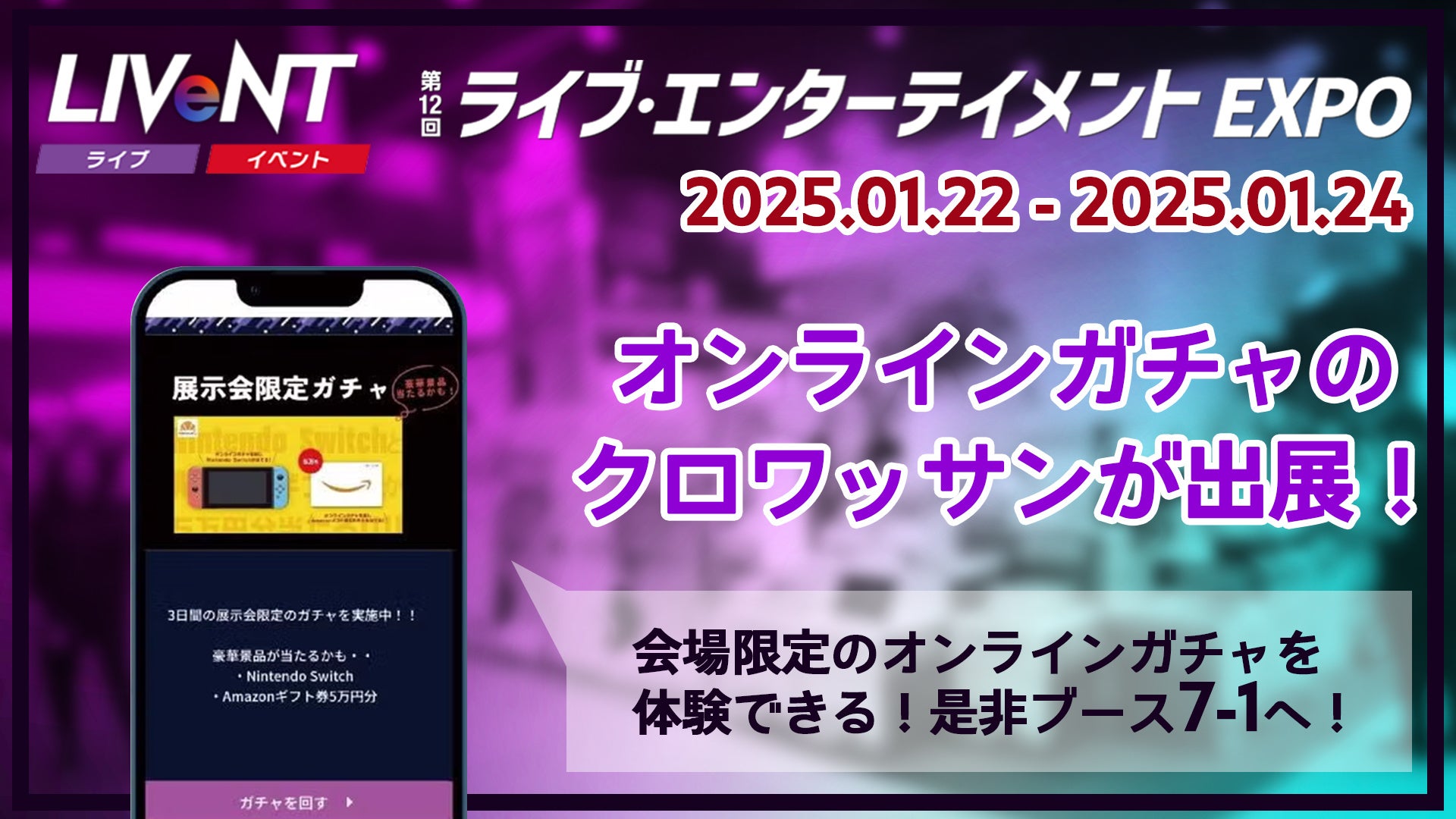 弊社サービス「クロワッサン」も「ライブ・エンターテイメントEXPO」のブースへ出展し、実際にオンラインガチャ・診断を体験することができます。