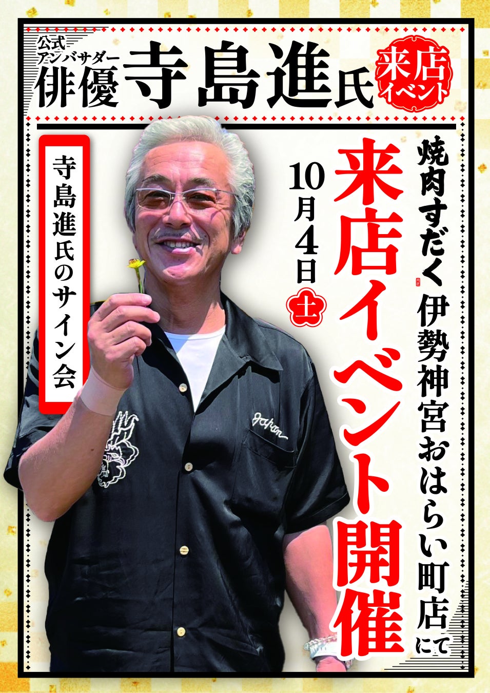 【新店オープン記念サイン会】焼肉すだく伊勢神宮おはらい町店に俳優寺島進が来る!新店舗オープン記念サイン会イベント応募開始のご案内