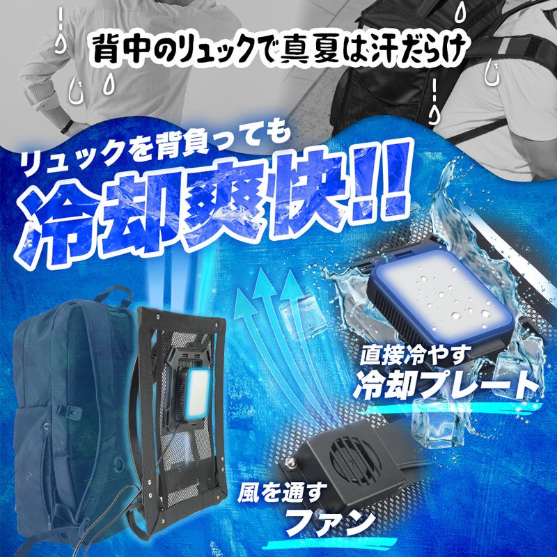 リュックに後付け 冷却プレートとファンの風で夏のリュックでもひんやり涼しい